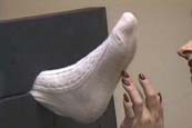| Slave Tania, wearing her cute dress and white knee socks, is being punished. Mistress Chloe locks her in the stocks for some tickle treatment. She uses her fingernails and feathers to punish Tania’s toes while she giggles and squirms with embarrassment. To really make the lesson sink in, Mistress Chloe tells Tania to carefully remove her thigh high leather boots, only to reveal some hot and sweaty knee socks! Tania is made to smell their heavenly aroma and kiss them to Mistress Chloe’s satisfaction. 30 min. |