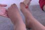 | Dahvia calls up her friends Georgia and Sirena for a special party. The girls excitedly slip into their nude pantyhose, and have a ball showing off how beautiful their feet and legs look in the nylons. It is a frenzy of sexy feet as the ladies dance, wiggle their toes, and rub their feet all over in ecstasy. The girls give each other foot massages and kiss each others silky toes. Then, Dahvia brings the ladies to the other room where the party gets really out of control. Each lady has her with her feet trapped in the stocks as the other girls tickle pantyhose feet with fingers and feathers. 60 min. |